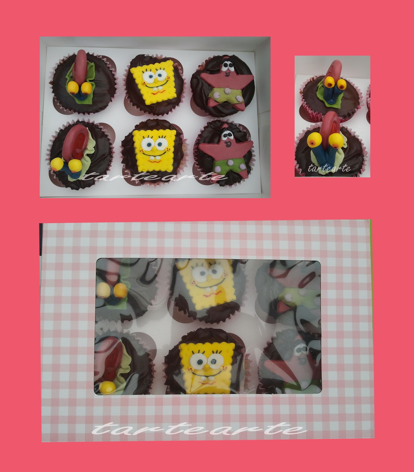 cupcakes que me encargo mi madre para Fadia. Una niña saharaui que cumplió 11 años, le encanta el color rosa y Bob Esponja.
